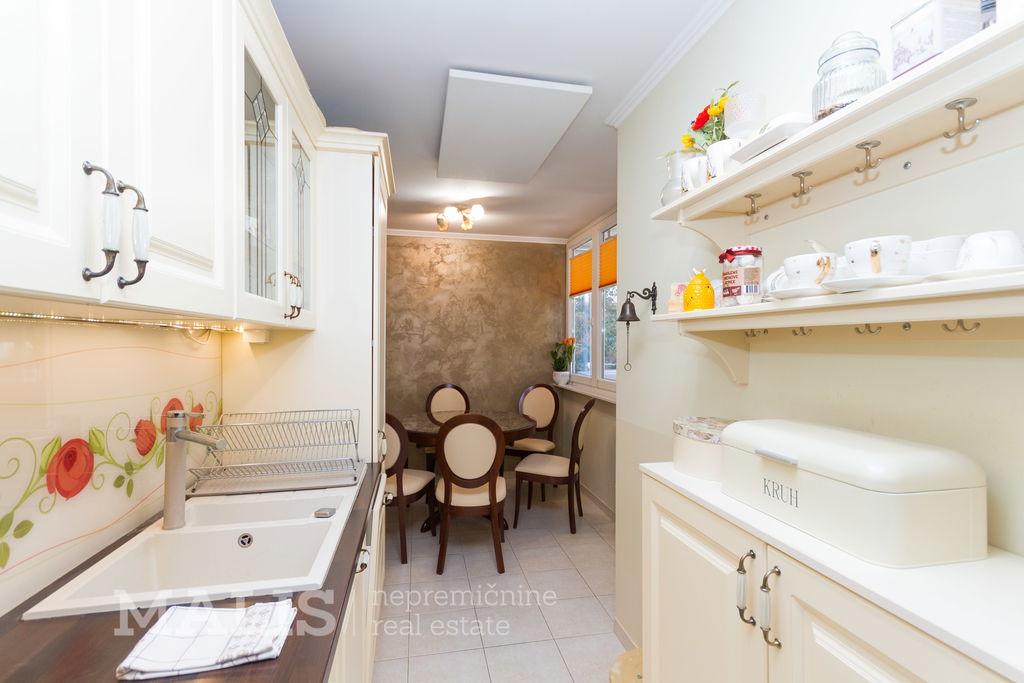 - kuhinjo z jedilnico v povezavi z dnevno sobo z izhodom na balkon -loggio, ki je zasteklen in je urejen tako, da je bivanje na njem prijetno v vseh letnih časih.