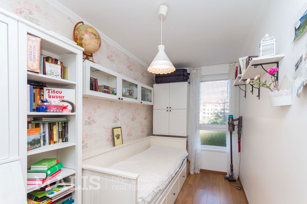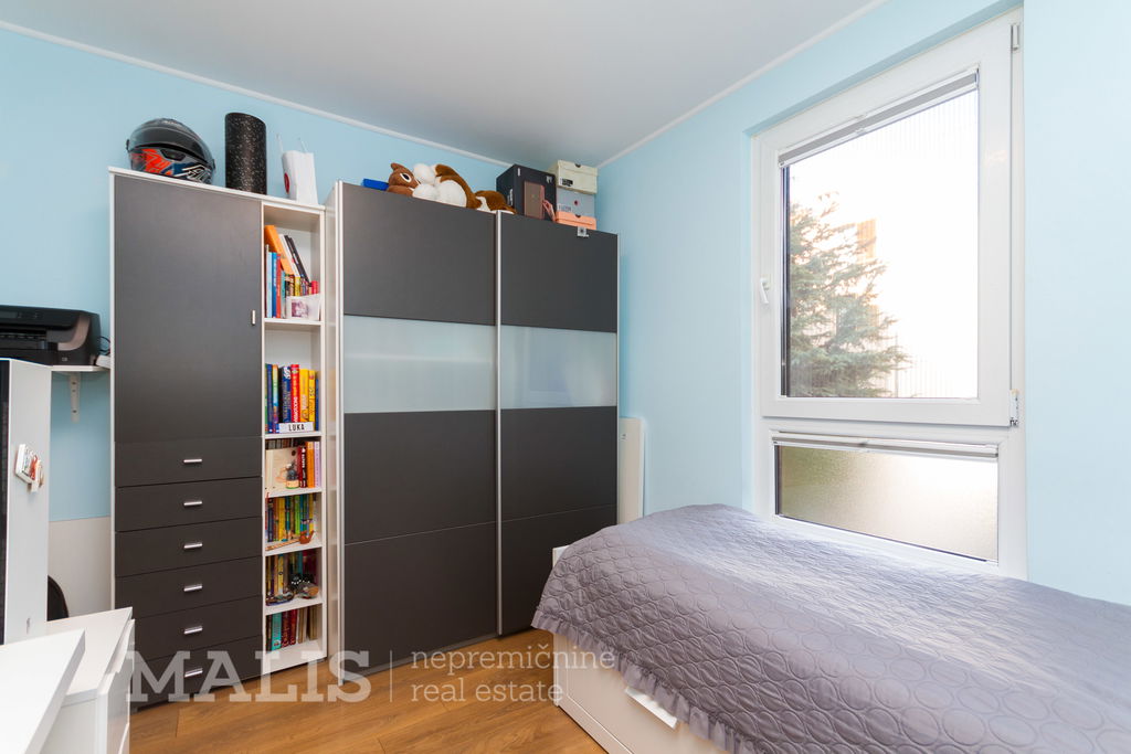 Iz vseh bivalnih prostorov je odprt pogled na zelenje, lega je V / JZ . Stanovanje se prodaja delno opremljeno (kuhinja, spalnica, otroške sobe, hodnik-vgradna omara)